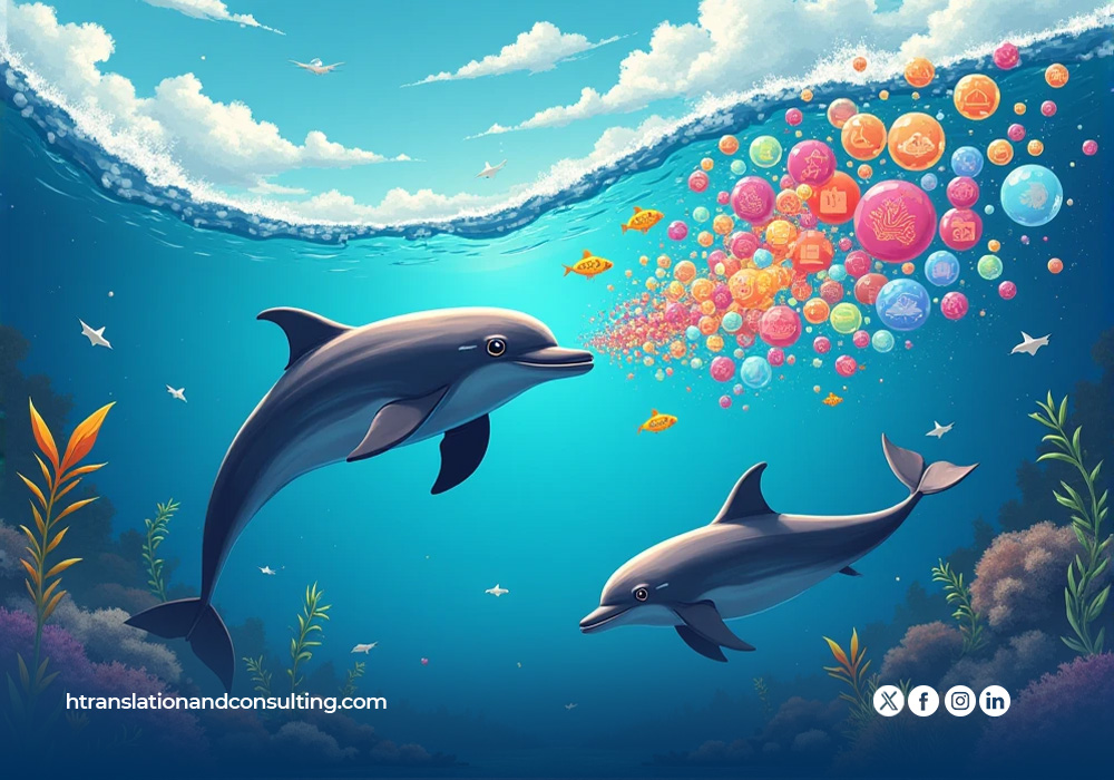 En dehors des primates, d’autres espèces révèlent des formes de communication élaborées. Les dauphins, par exemple, utilisent un système de vocalisations complexes, comprenant des sifflements spécifiques à chaque individu, semblables à des noms propres (Janik & Slater, 1997). Des études ont également montré que certains oiseaux, comme les diamants mandarins, sont capables d’acquérir des structures syntaxiques en combinant des motifs sonores selon des règles précises (Gentner et al., 2006).